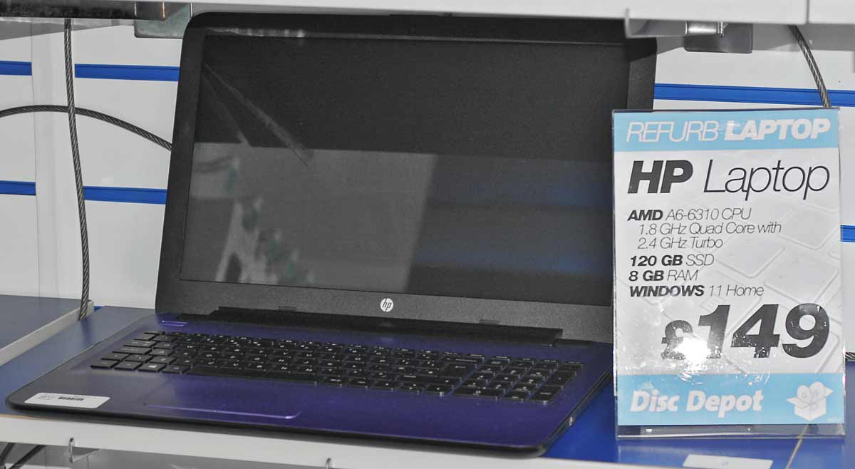 HP refurbished laptop on display at Disc Depot Dundee with A6-6310 CPU