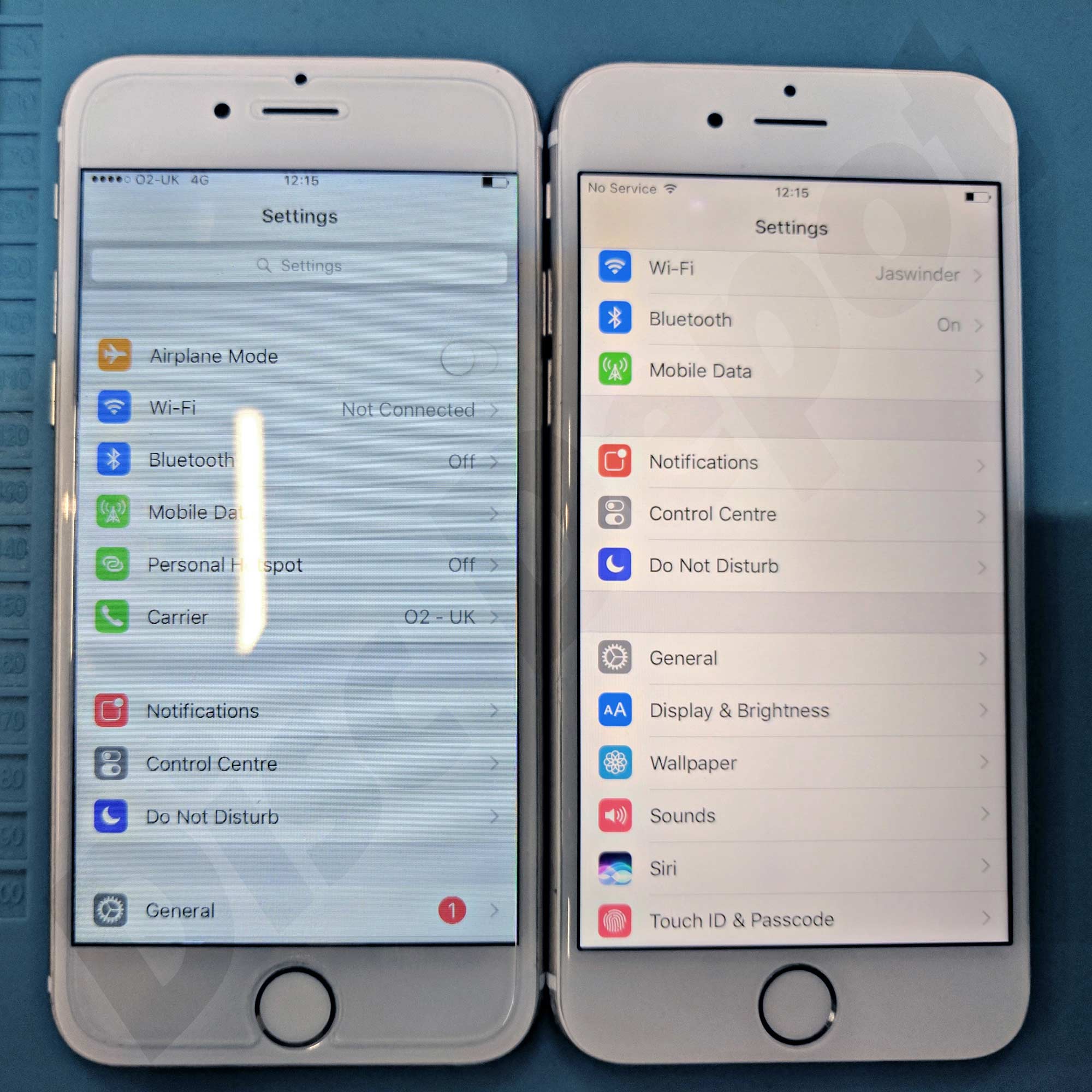 We had a repair in a while back which provides a very clear example of the difference. The customer had their iPhone 6 repaired in another store and wasn’t happy with the quality of the screen so they came to us for advice.